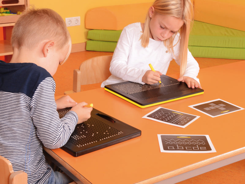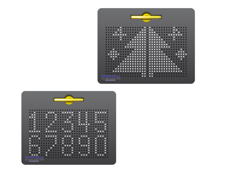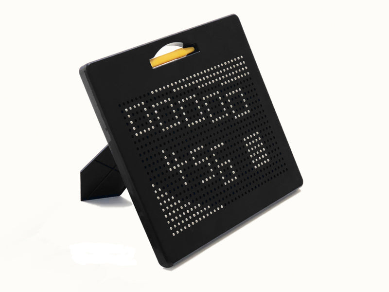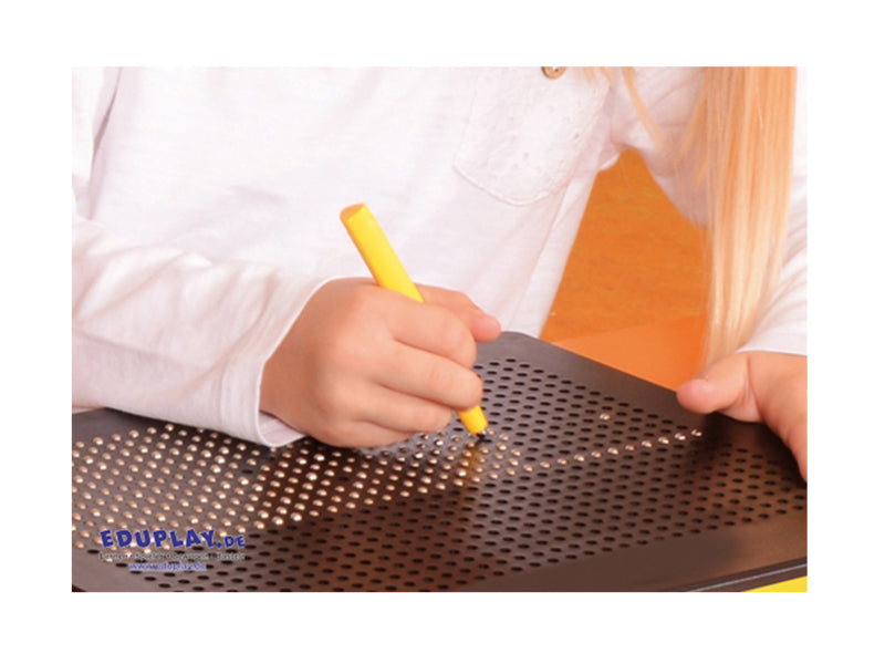 Met de magneetstift kunnen de stalen bolletjes naar de oppervlakte gebracht worden.
