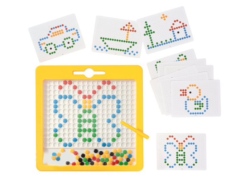 Met de magneetstift kunnen de noppen uit de rand op het bord in de gewenste verdieping gelegd worden.