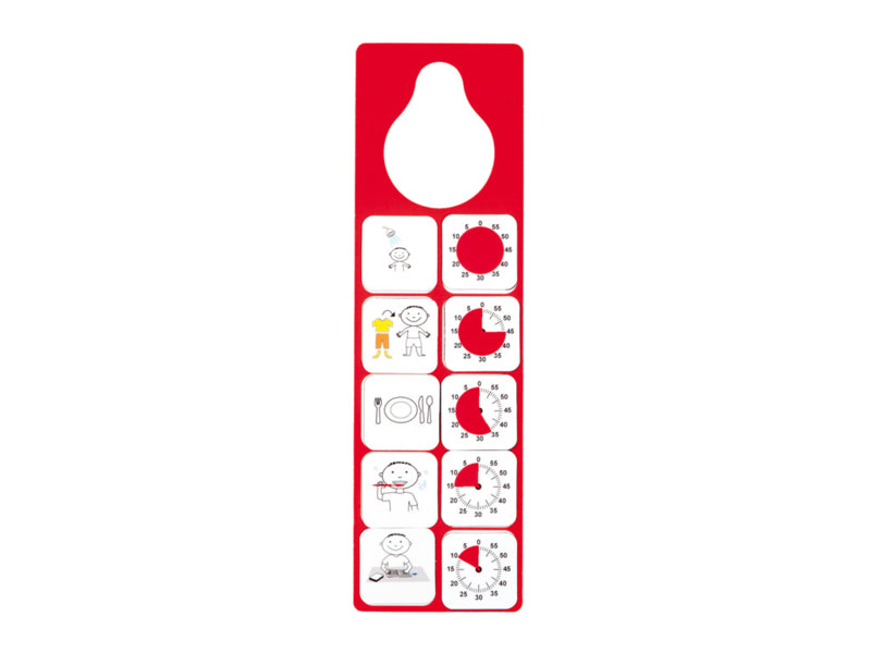 Plaats de magnetische pictogrammen op de deurhanger en creëer zo de activiteit of routine van uw keuze.