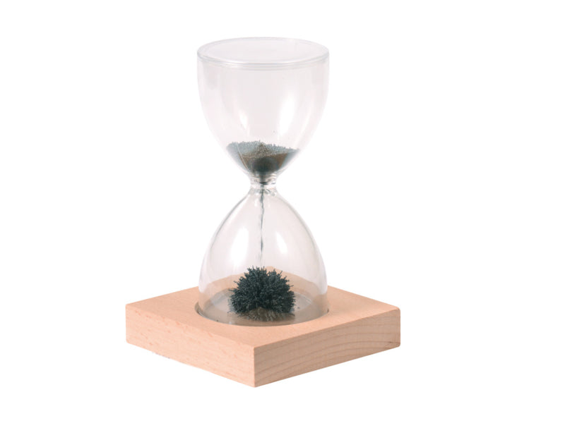 Deze zandloper is niet gevuld met zand maar met metaalvijlsel.