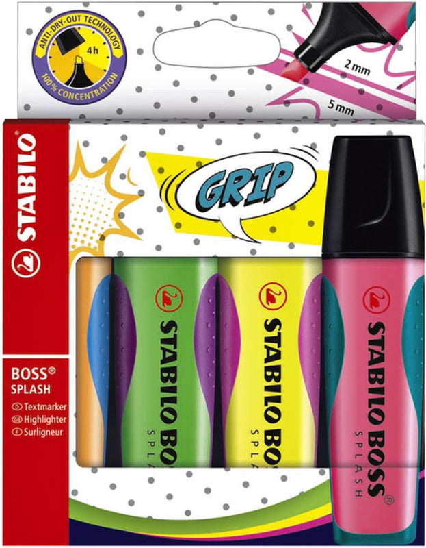 Markeerstift STABILO Boss Splash 75/5 etui à 4 kleuren