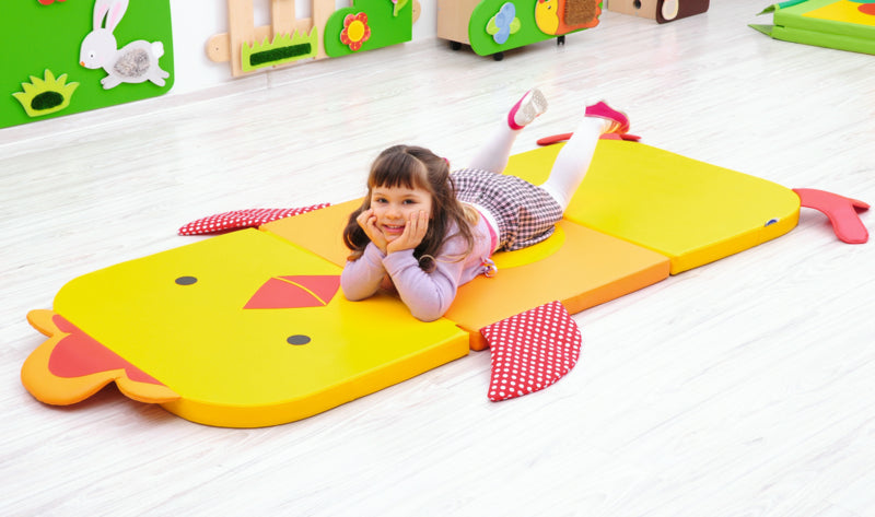 Driedelige matrassen in de vorm van een dier met bewegende poten en oren, bedekt met duurzaam vinyl of PU, gemakkelijk afwasbaar. Dient als een plek om te oefenen of als een speelplek voor kinderen. Het grappige sprookjesachtige uiterlijk en de solide constructie maken het comfortabel en aangenaam.