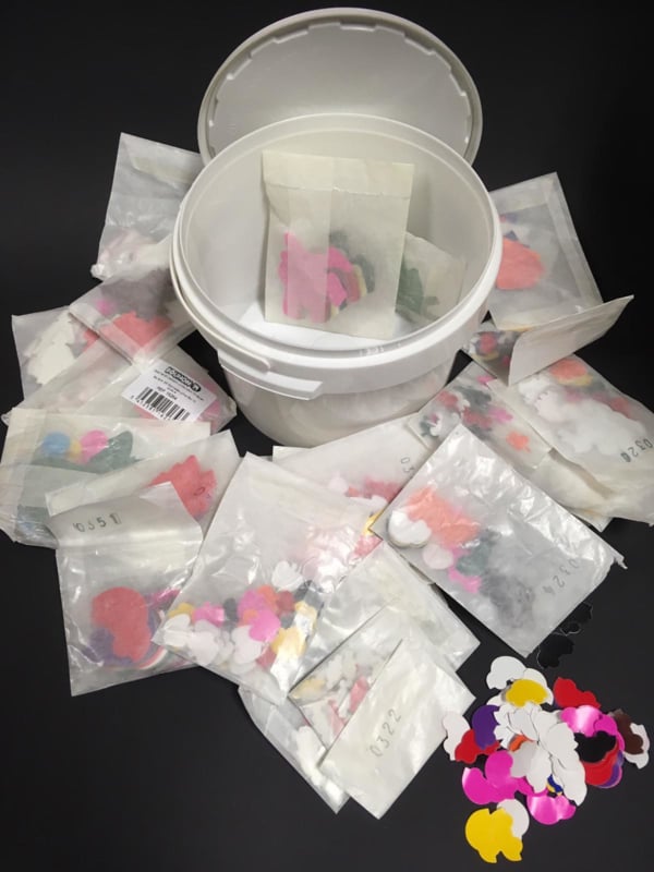 Een complete set plakfiguren bestaande uit 35 zakjes plakfiguren in handige aflsuitbare(opberg)emmer.