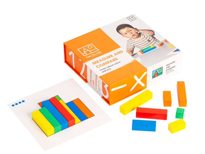 Traint ruimtelijke oriëntatie en logisch denken door de verschillende blokken te vergelijken en te meten.