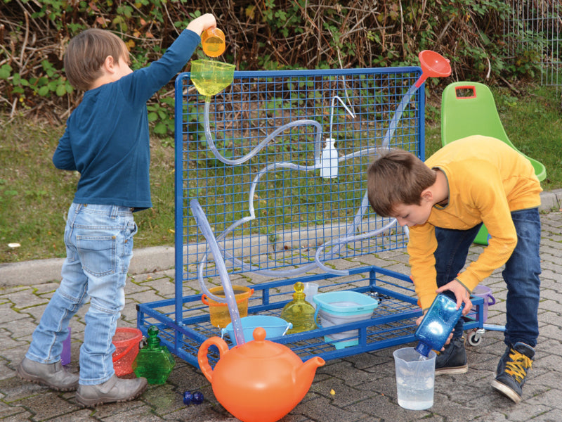 Het rek is geschikt voor vele doeleinden: kledingrek met hangers, waterspelen zoals op de afbeelding etc.