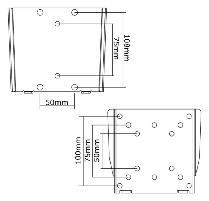 - Dit product is geschikt voor schermen met een Vesa gatenpatroon van 75x75mm of 100x100mm.