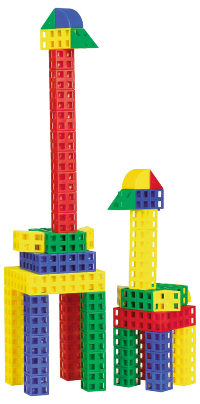 250 stuks: 130 kubussen, 40 kwadranten, 40 gelijkzijdige driehoeken en 40 rechte driehoeken.