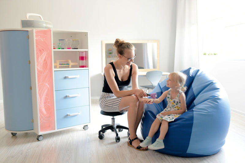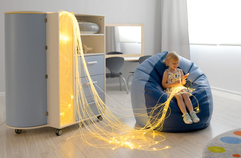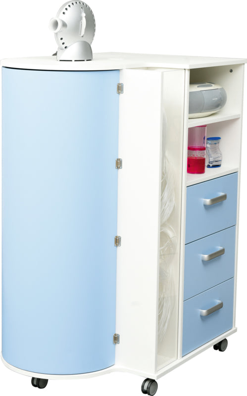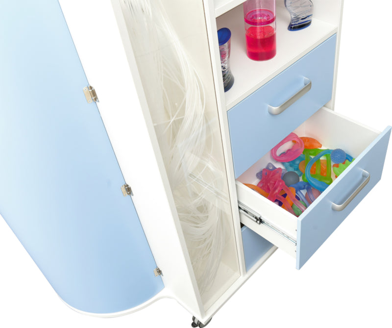 Gemaakt van wit gelamineerd spaanplaat en blauwe MDF-plaat