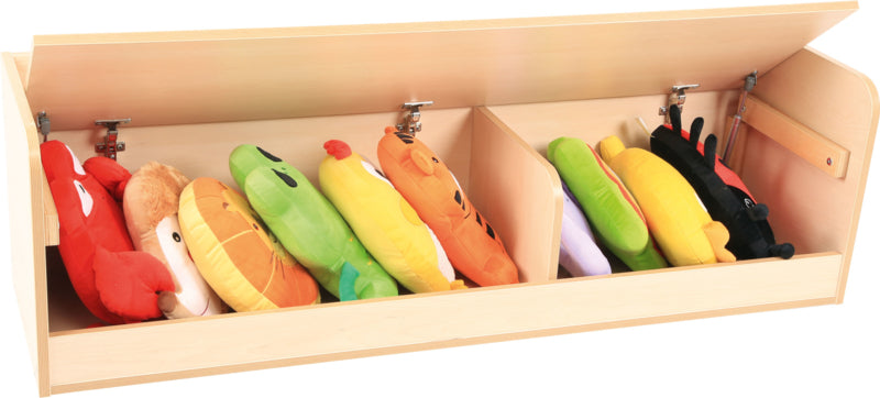 Kast met beweegbaar bovenpaneel, met scheidingswand en zacht sluitende scharnieren (wat de mogelijkheid van beknelde vingers elimineert), gemaakt voor het opbergen van schoenen, kussens, enz.