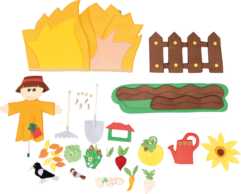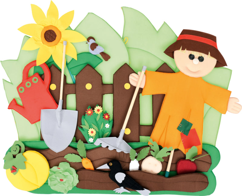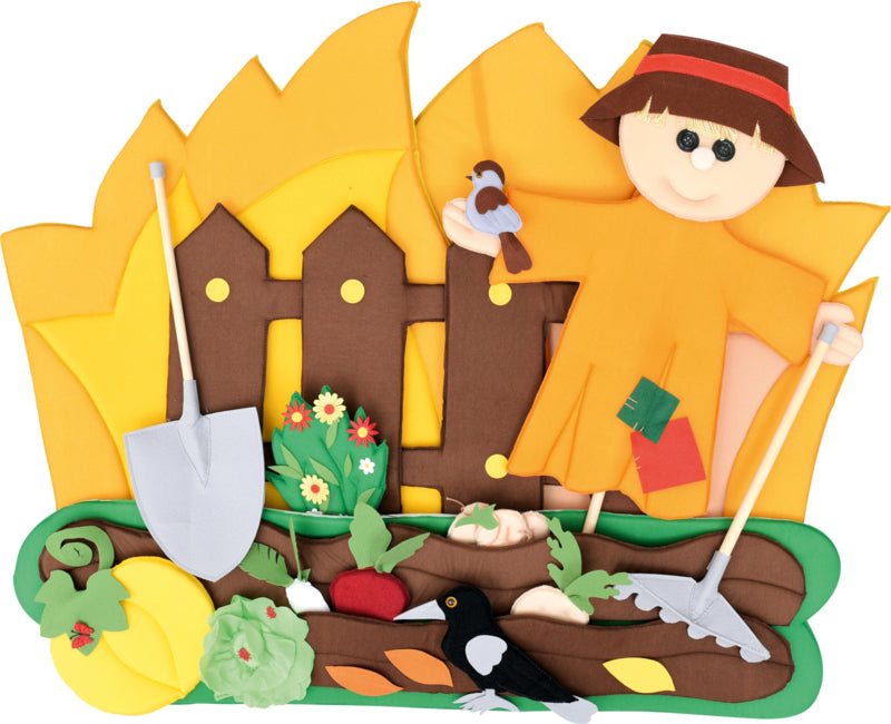 Tapijt bestaande uit 29 verplaatsbare elementen met klittenband: basis tuinuitrusting, plantengroei van lente tot late herfst en winter in de tuin. Het helpt kinderen, vooral diegenen die in de stad wonen, om te leren over de natuurlijke levenscyclus. De tuin is ook een plek waar vogels en insecten leven.