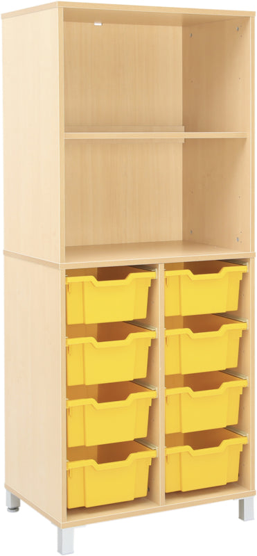 Dankzij de niveau verhogers kun je een hoge kast creeren die ook dienst kan doen in de functie van kantoormeubilair.