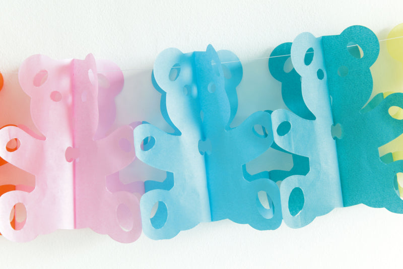 Slingers gemaakt van fijn, gekleurd tissuepapier.
