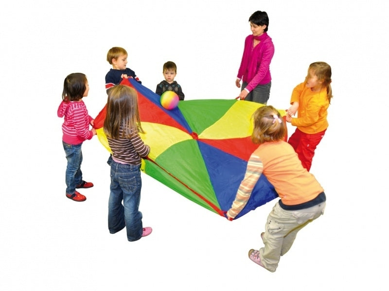 Als alle kinderen tegelijkertijd de handen omhoog doen vliegen de lichtgewicht ballen of ballonnen de lucht in.