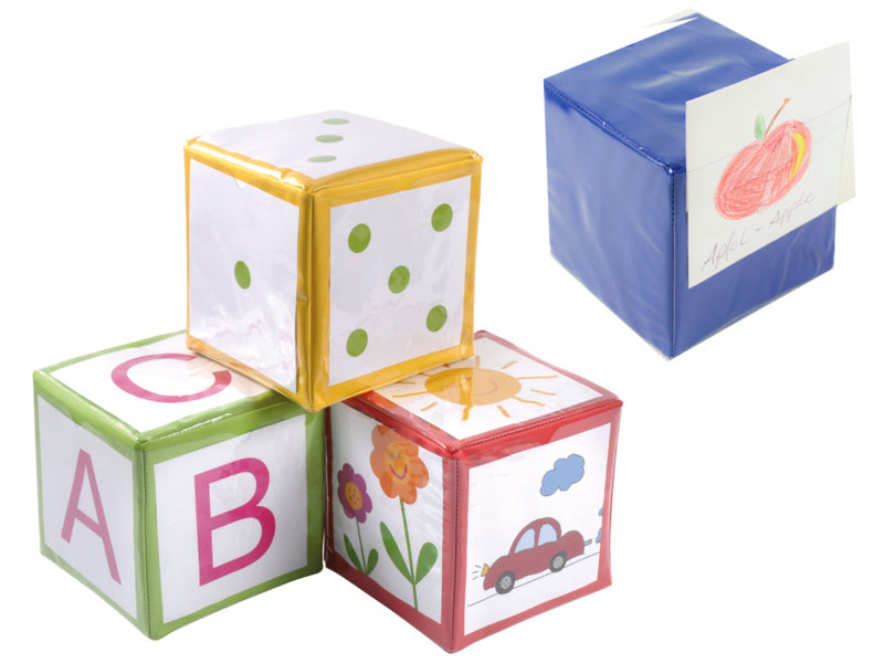 Schuimstof dobbelsteen met insteekvakken voor opdrachten of plaatjes.
