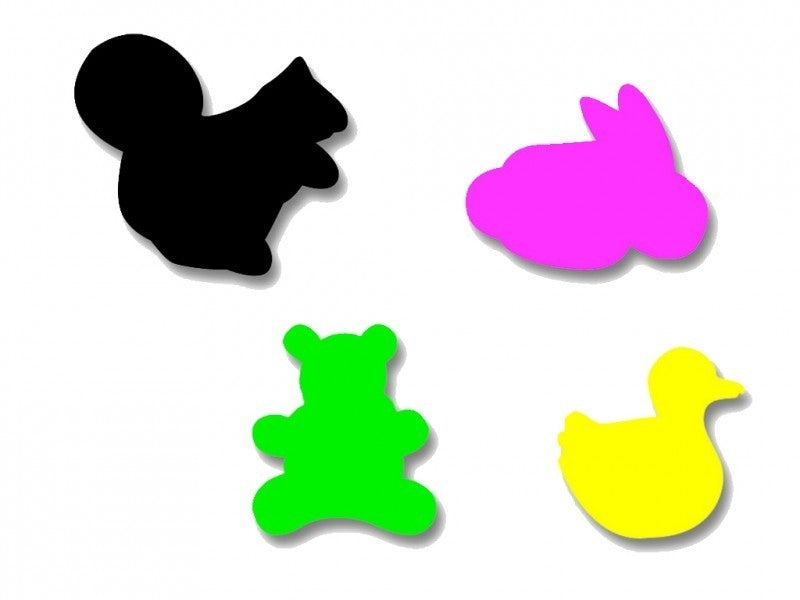 Plakfiguren eekhoorn, beer, konijn en eend