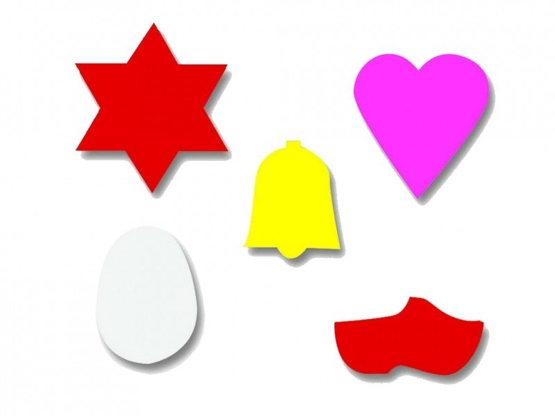 Plakfiguren ster, hartje, klokje, eitje en klompje