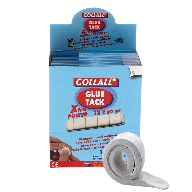 Verwijderen: Glue-tack is makkelijk te verwijderen door het voorzichtig "op te rollen". Eventeel een groter stuk Glue-tack er overheen plakken en het geheel "weg rollen". Let op : kan eventuele sporen nalaten op absorberende of poreuze materialen. Eerst testen!