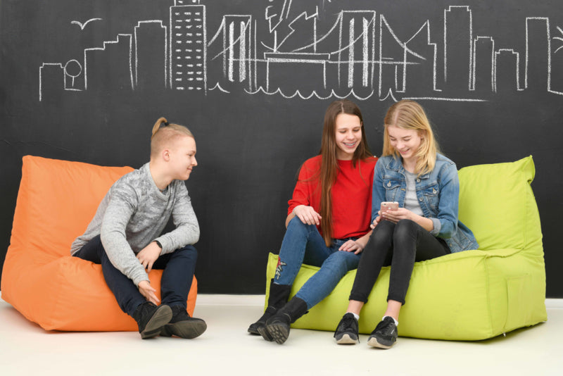 Comfortabele poef in stoelvorm, gevuld met schuim, met een polyester hoes.