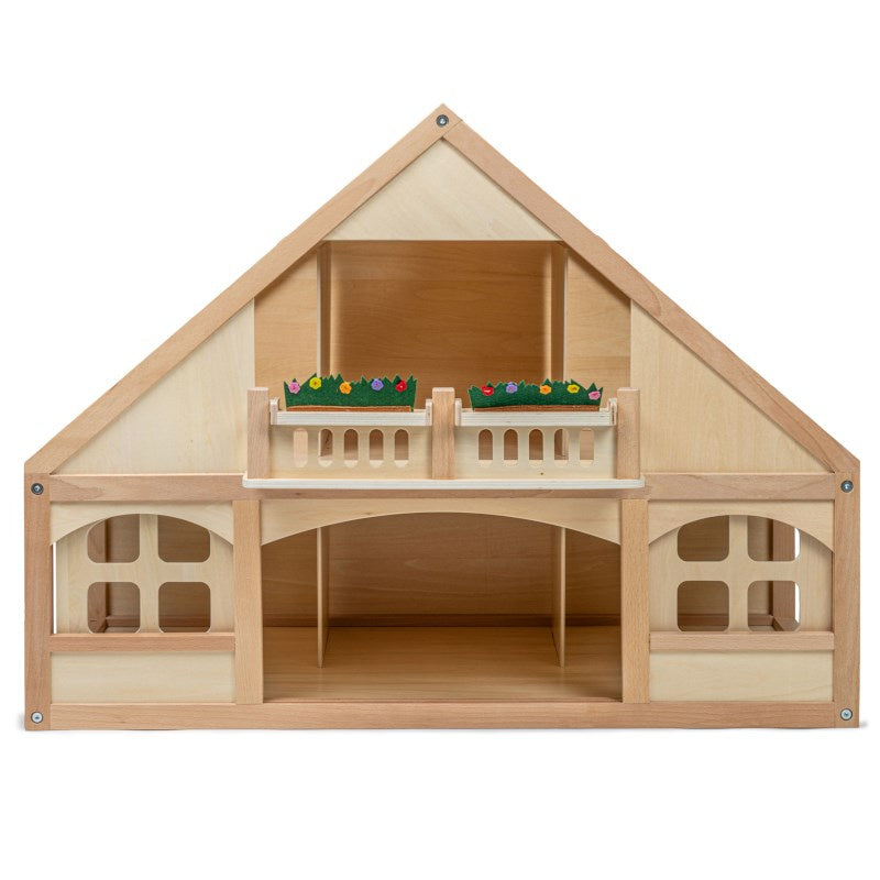 Dit grote poppenhuis kan eenvoudig in elkaar gezet worden.