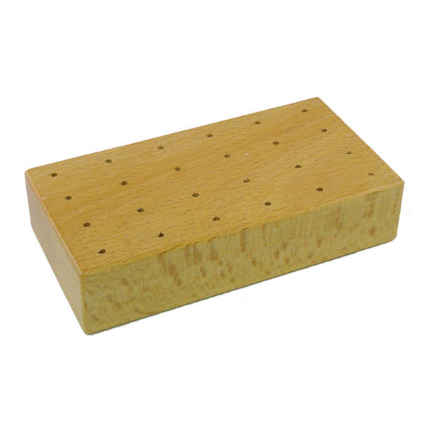 - Transparant gelakt prikpenblok van beukenhout voor het veilig opbergen van prikpennen.