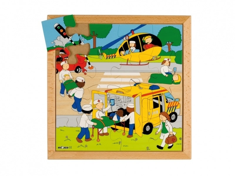 Puzzel van Educo met het thema actie - ongeval.
