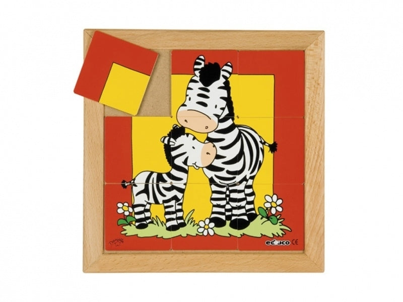 U krijgt geleverd: 1 puzzel Educo moeder en kind - zebra in een houten frame.