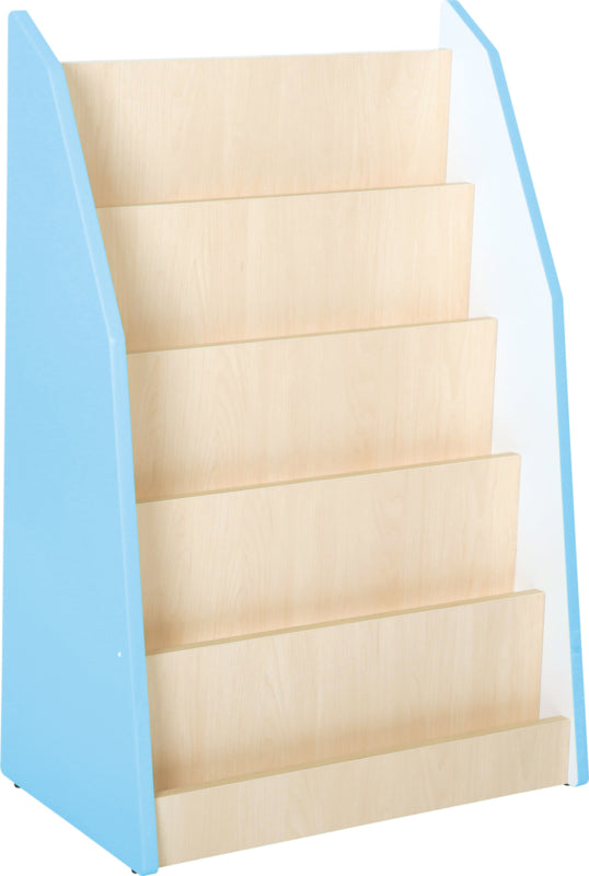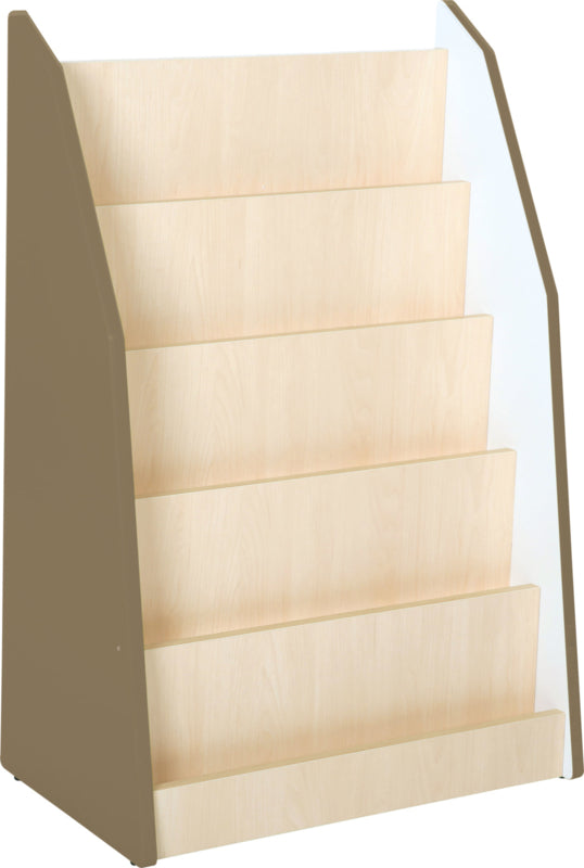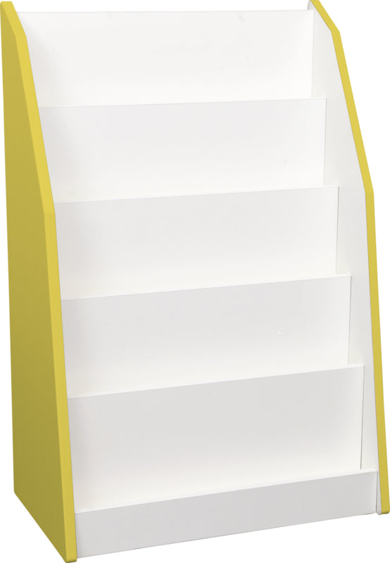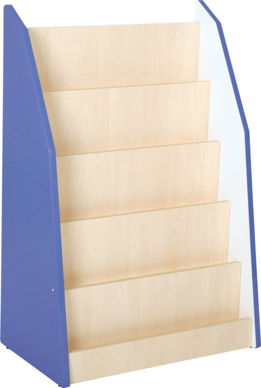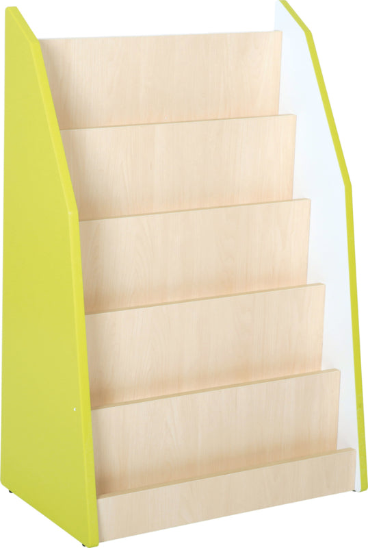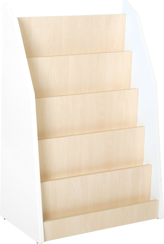 Staande, eenzijdige bibliotheek om boeken weer te geven. Gemaakt van gelamineerd spaanplaat (dikte: 18 mm), in een esdoorn of witte kleur en kleurrijke, gelamineerde MDF-plaat (dikte: 18 mm)