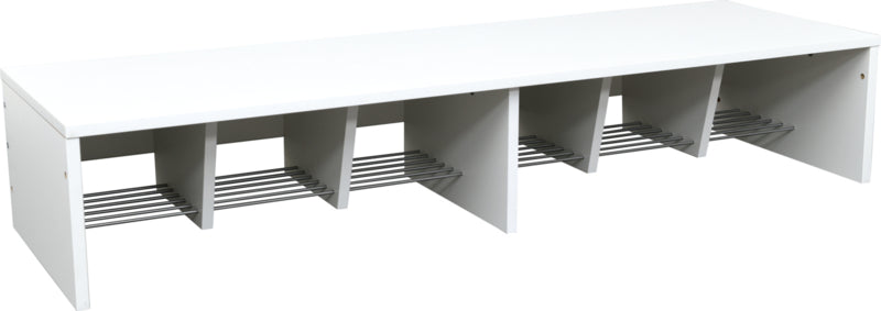 Garderobebank gemaakt van gelamineerd spaanplaat in een esdoorn kleur of wit (dikte 18 mm.) met schoenenplank.