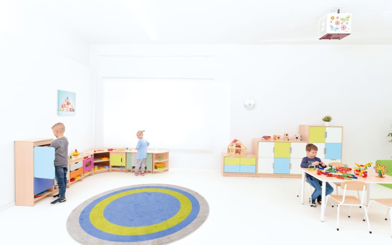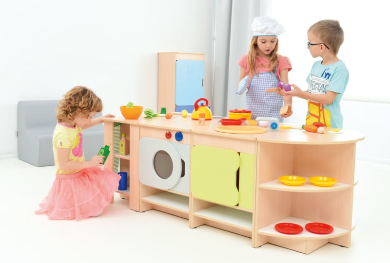 Quadro keukens zijn er om de thuissituatie na te spelen,wat groepsintegratie ontwikkelt. Kinderen communiceren en werken samen tijdens dit fanasiespel.