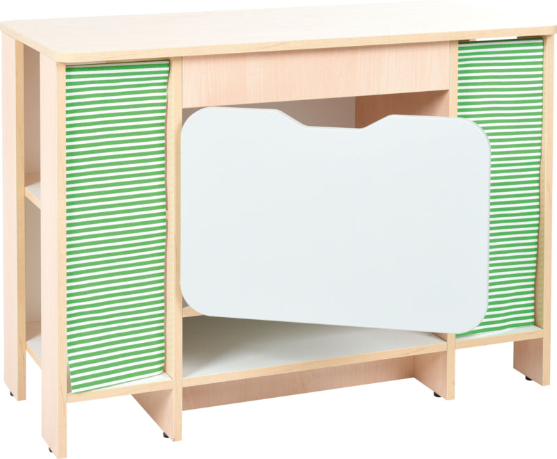 Quadro keukens zijn er om de thuissituatie na te spelen,wat groepsintegratie ontwikkelt. Kinderen communiceren en werken samen tijdens dit fanasiespel.