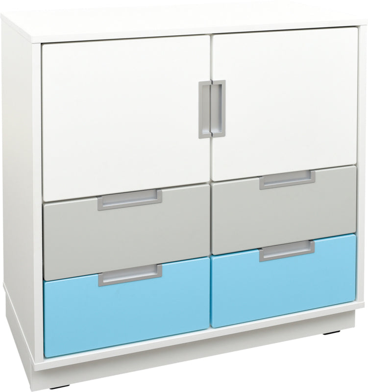 De kast is aan te vullen met kleine deuren, deze vindt u hier of middelgrote deuren deze vindt u hier, en/of lades, deze vindt u hier. In 12 vrolijke kleuren te bestellen