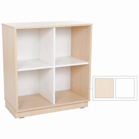 Kast gemaakt van gelaagd spaanplaat in een esdoorn kleur en wit (dikte: 18 mm).