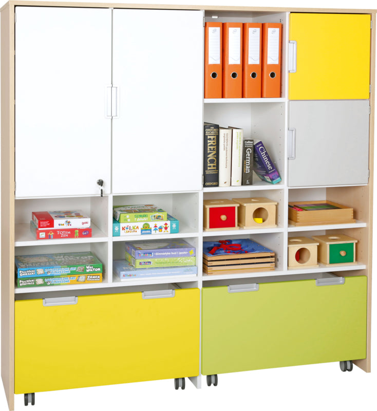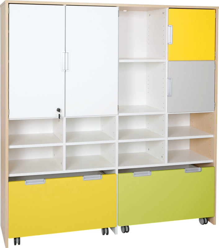 Meubelset gemaakt van gelamineerd spaanplaat in een esdoorn en/of witte kleur. Fronten van gelamineerde MDF-platen (dikte 18mm).