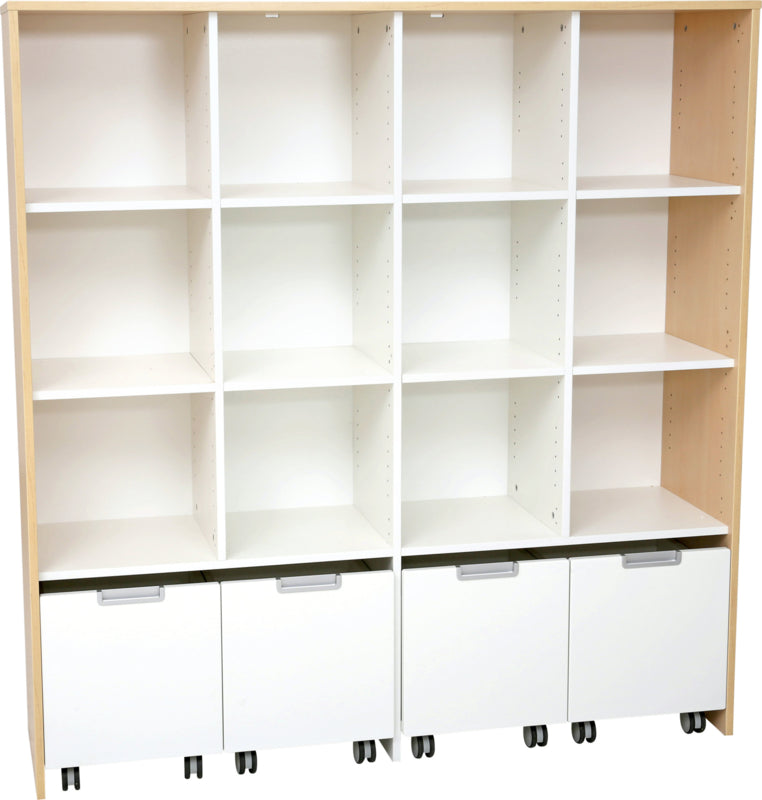 - 092187 multifunctionele kast, 12 vakken en onder 2 vakken voor lades, afm. 154 x 41,5 x 161,6 cm. 1 stuk