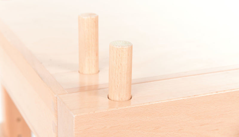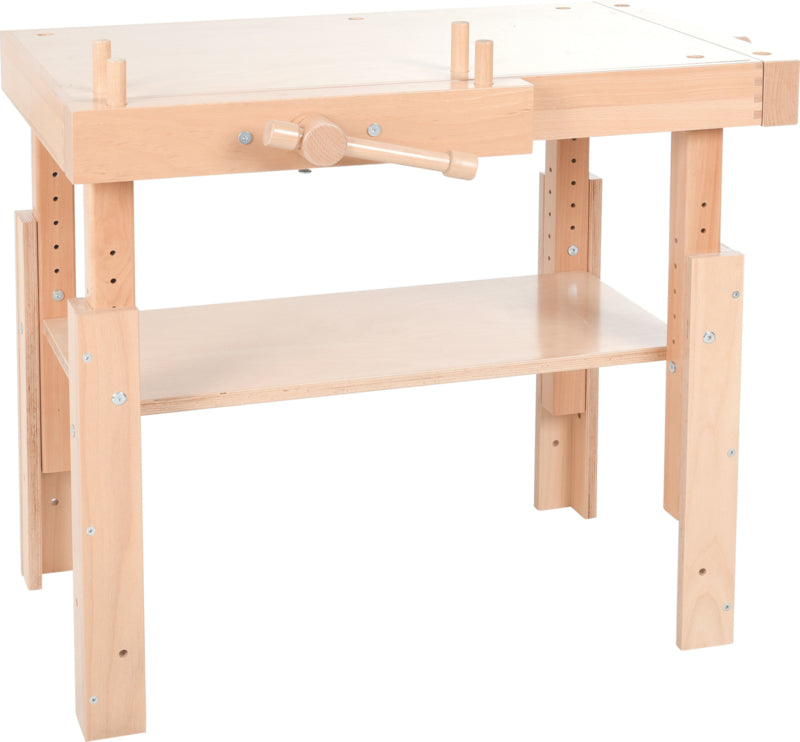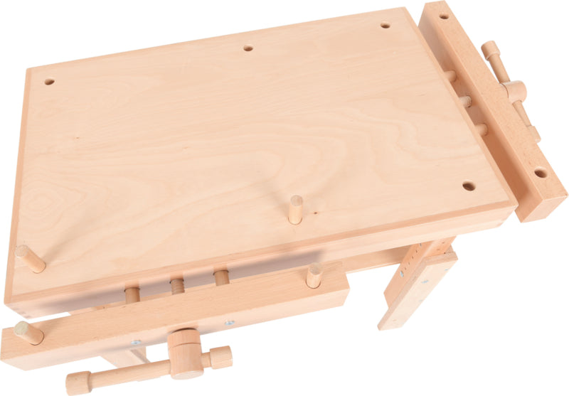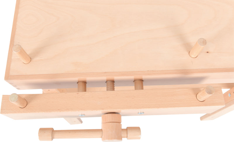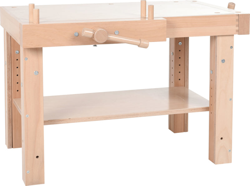 Houten werkbank voor knutsel- en technisch werk, met 2 houten bankschroeven.