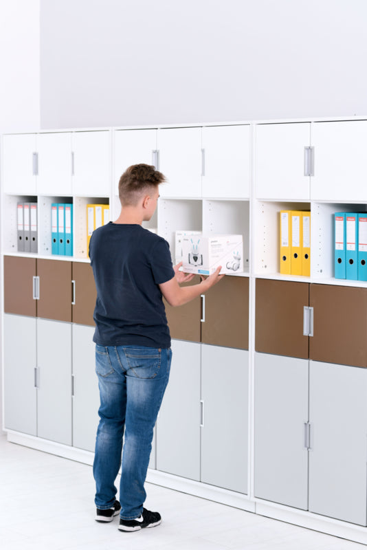 De kast is aan te vullen met kleine deuren, deze vindt u hier of middelgrote deuren deze vindt u hier, en/of lades, deze vindt u hier.