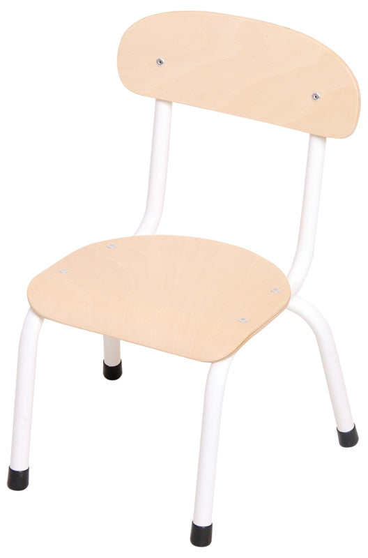 Achterpoten zijn licht gebogen waardoor de stoel stabiel staat.