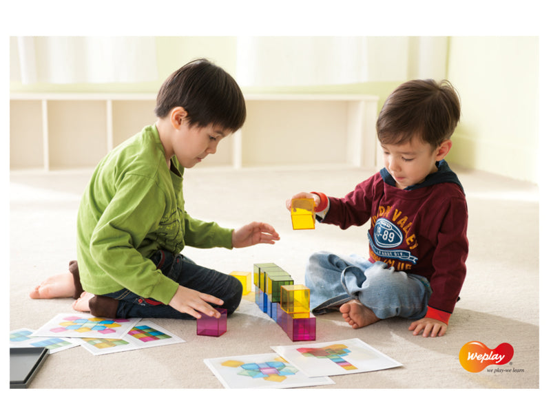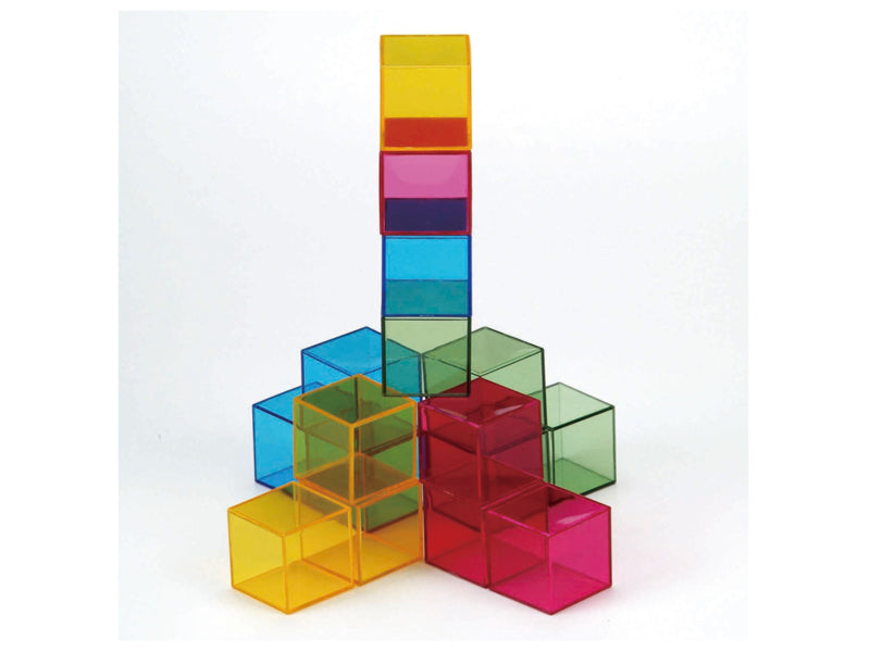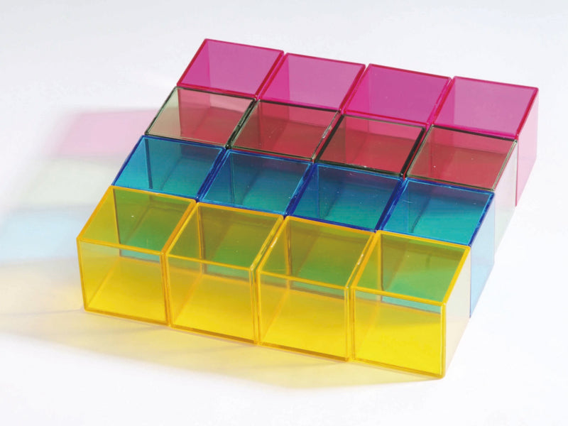 Inh. 16 transparante blokken van 5 x 5 x 5 cm. in opbergbox.