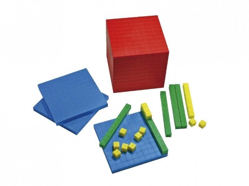 Inhoud: 100 x 1e blokken, 10 x 10e blokken, 10 x 100e blokken en 1 x 1000e blok.