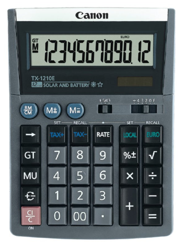 - De TX-1210E is een 12-cijferige bureaucalculator met een groot, verticaal gekanteld display.