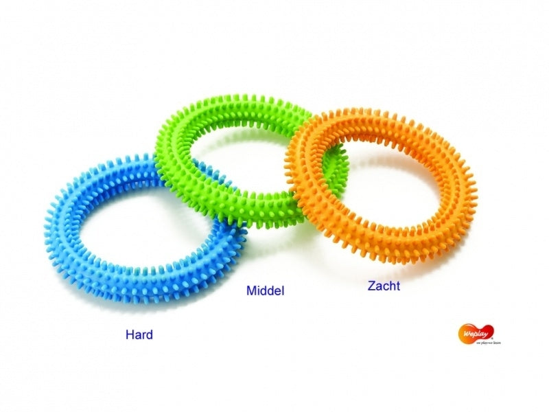 Inh.: 3 ringen met stekels in 3 kleuren en in 3 hardtegraden: hard, middel en zacht.