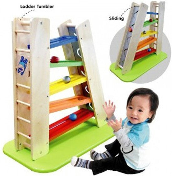 De rollerbaan bevat tevens een leuke traptuimelaar en een sliding paneel. Geschikt voor o.a. kinderdagverblijven. Afmetingen van deze rollerbaan zijn: 76 x 40 x 80cm