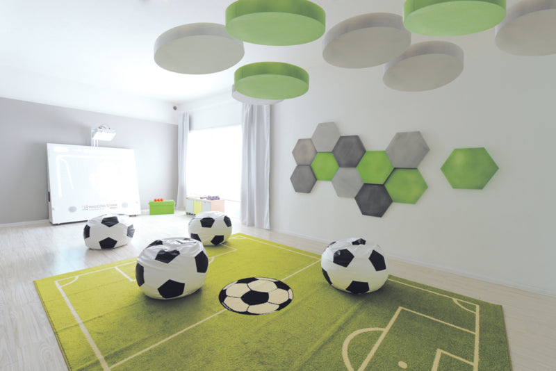 Ronde, decoratieve geluiddempende panelen om aan het plafond te hangen. De panelen zorgen ervoor dat het kind zich gemakkelijker op de taak kan concentreren, door de hoeveelheid auditieve stimulatie te beperken. Ideaal voor kinderen met concentratie- en aandachtsproblemen of auditieve verwerkingsstoornissen. Panelen gemaakt van polyurethaanfoam.
