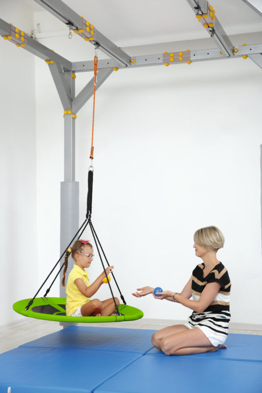 Ronde schommel maakt het bereiken van het kind gemakkelijker, dankzij de vorm, wat erg belangrijk is tijdens sensorische integratie therapie. Het maakt lineaire, zijwaartse beweging of rotatiebeweging mogelijk (bij gebruik van zwenken).