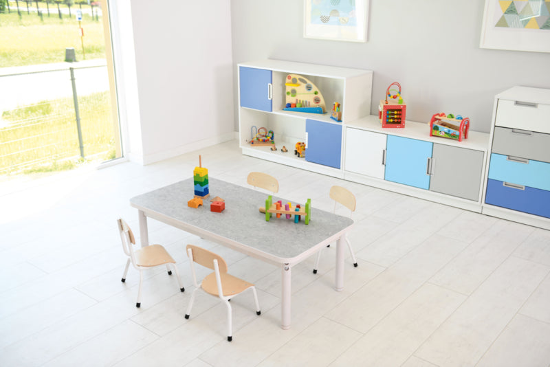 4 mogelijke tafelhoogtes: 40, 46, 52, 58 cm