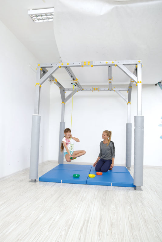Met de schildpad schommel kan het kind zich vrij in alle richtingen bewegen. Het kan slingeren en roteren. Het wordt gebruikt om het evenwicht te stimuleren en de balans en motorische planning te verbeteren.