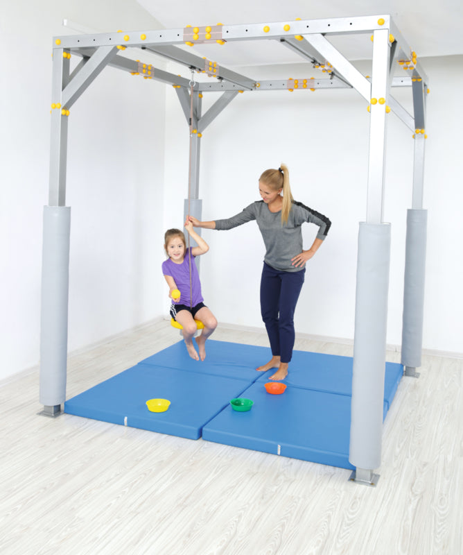 Met de schommelschijf kan het kind zich vrij in alle richtingen bewegen. Het kan slingeren en roteren. Het wordt gebruikt om het evenwicht te stimuleren en de balans en motorische planning te verbeteren.