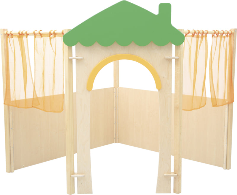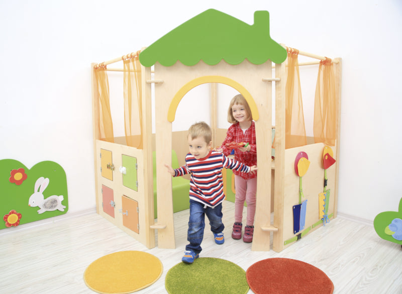 Het gezellige, kleurrijke huis gaat de favoriete mysterieuze schuilplaats van kinderen worden.Het is de perfecte plek voor de jongsten op zoek naar een tijdje rust als het te druk is. Panelen in 2 muren van het huis zijn te veranderen en kunnen worden gekozen afhankelijk van de noodzaak (099131-099136, 099140, wordt apart verkocht). Hierin spelen ontwikkelt de verbeelding en creativiteit van elk kind. Het interieur maakt het mogelijk om een entertainmenthoek, rusthoek of themahoek te creëren door er een keuken of matrassen en stoelen in te zetten. Het huis wordt geleverd met gordijnen. Huiselementen zijn gelakt.