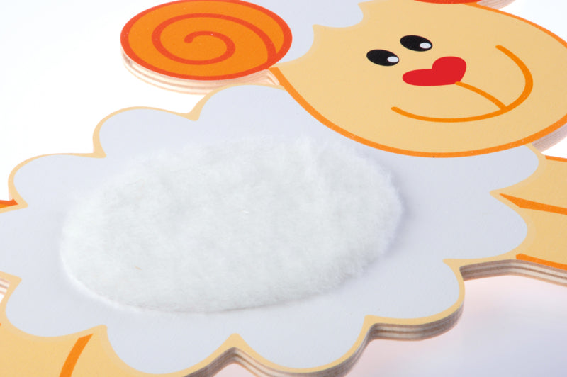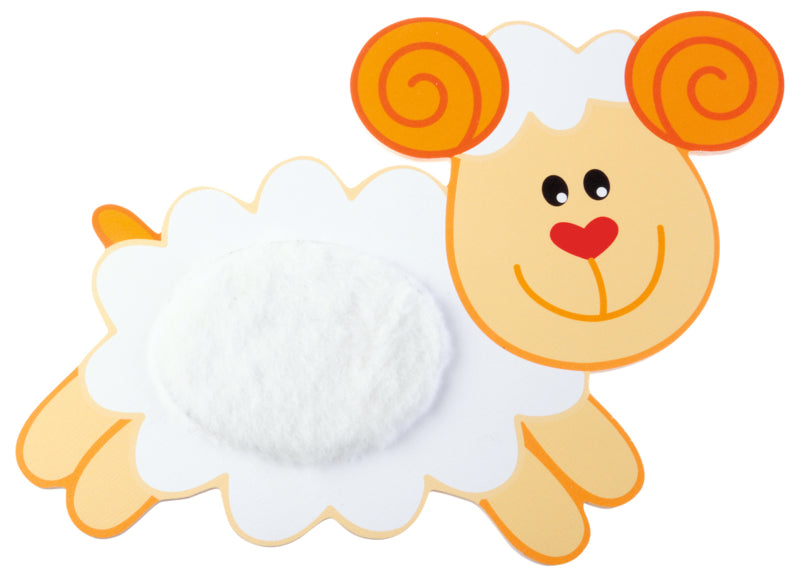 De rug van het schaap is bedekt met een stof die een ruwe vacht imiteert.