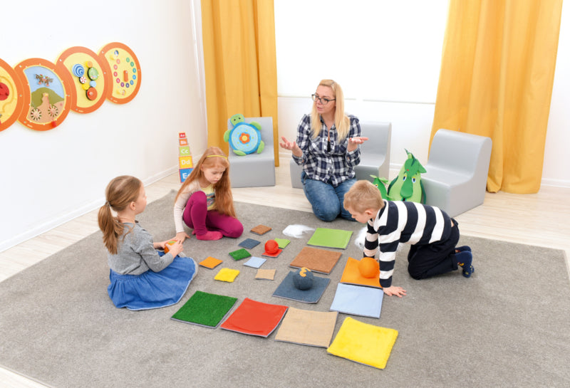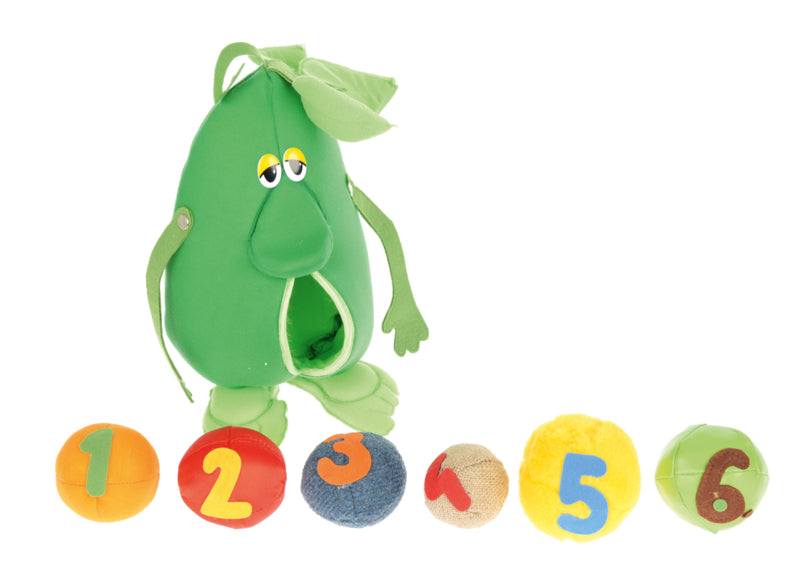 Deze erwten stimuleren de zintuigen van aanraking en zicht. Incl. 6 kleurrijke zachte ballen met verschillende materialen: satijn, velours, corderoy, jute, kunstleer en bont. De ballen zijn verborgen in de erwt. De ballen kunnen ook worden gebruikt om kleuren te leren en te tellen.